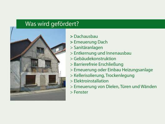 Eine Aufwertung der Innenstadt kann daher auch nur mit dem Engagement der privaten Eigentümer stattfinden. Um ihnen einen Anreiz zu bieten, Veränderungen an ihrem Gebäude vorzunehmen, hat die Stadt zwei Fördermöglichkeiten beschlossen.